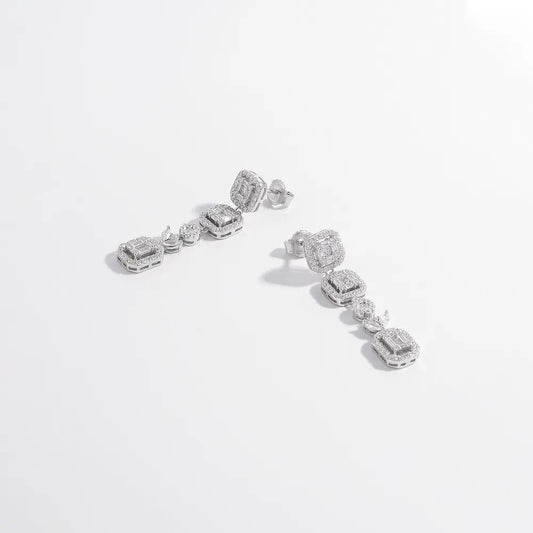 925 Sterling Silver Inlaid Zircon Geometric Dangle Earrings