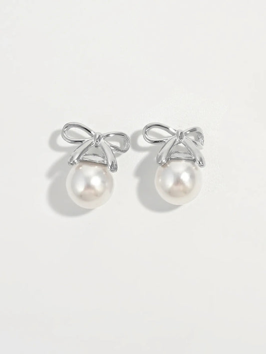Sold out925 Sterling Silver Pearl Bow Earrings