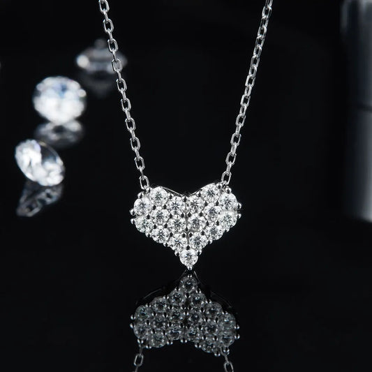 Moissanite 925 Sterling Silver Heart Pendant Necklace