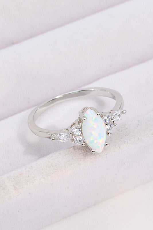 Opal and Zircon Platinum-Plated Ring