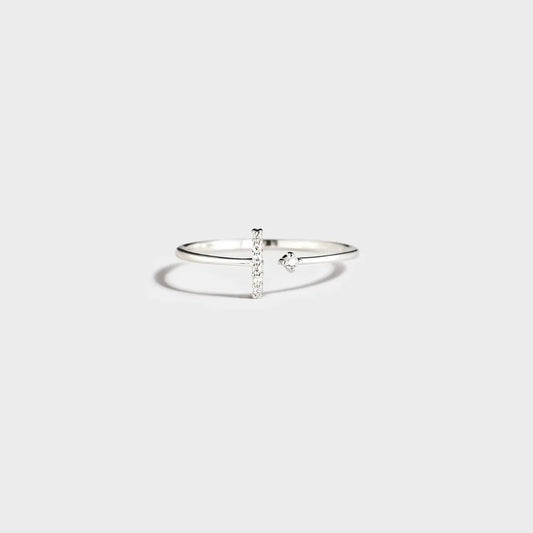 T Shape Inlaid Zircon 925 Sterling Silver Open Ring