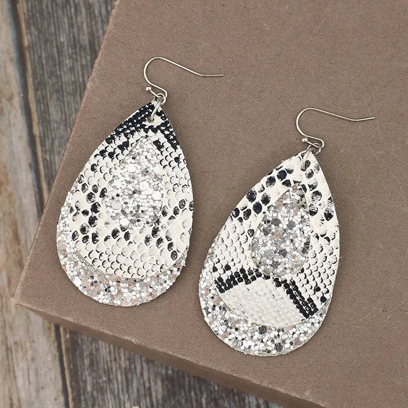 PU Leather Sequin Teardrop Earrings